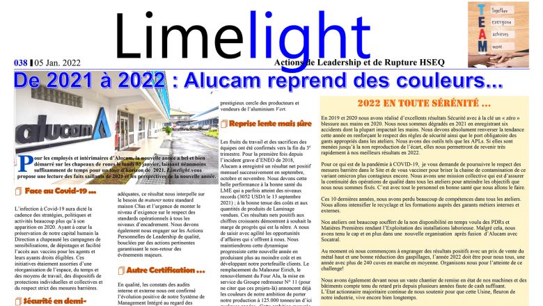 Limelight N° 38_Janvier 2022: De 2021 à 2022 – Alucam reprend des couleurs